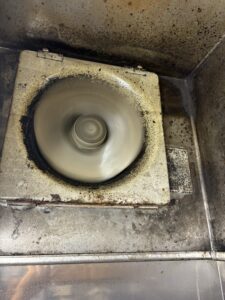 今回ご依頼いただいた居酒屋様でも、長年の使用により換気扇全体が重度の油汚れに覆われていました。
